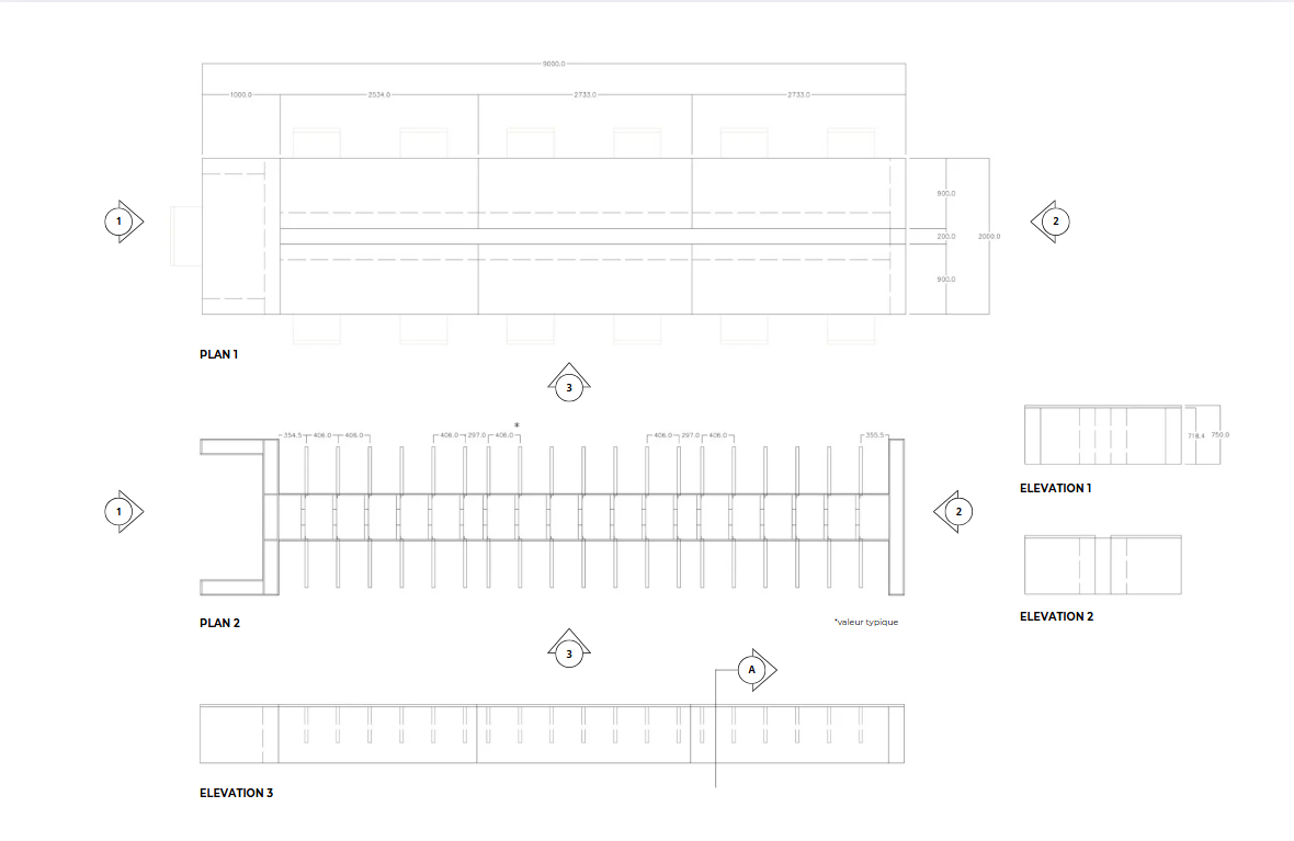 Conception approfondi d’un mobilier lors du mandat de la conception d’un espace de bureau à l’image de la firme de design graphique Paprika. L’idée était de pousser davantage la faisabilité du meuble en développant sa structure et sa construction. Pour ce faire, voici des détails techniques de la table de travail des designers dans l’espace création.